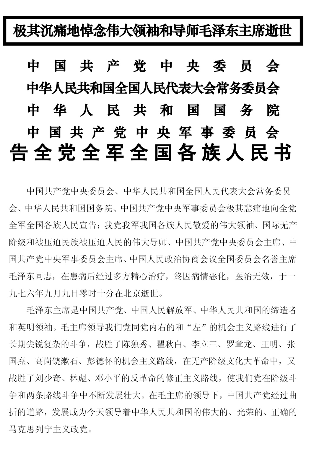 1976年9月9日《告全党全军全国各族人民书》第一段广播原声