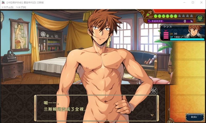 出于对兰斯的喜爱,在完成r4时我们就已经将目光瞄准这个外传了(A社传统,兰斯客串主角的外传最早可追溯到1990年斗神都市1的提示盘)。尽管其篇幅不大,但也已经能体现吾王的魅力!程序方面的难题在夏娃2本篇已经解释过了,不过基本不影响,里面的战斗对于武功高强的兰斯大爷来说连锻炼身体都说不上(笑)。