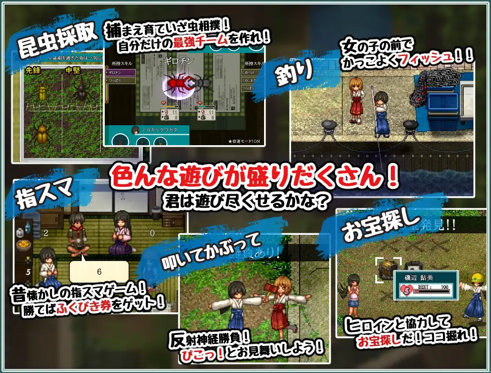 捕蟲、相撲、垂釣、秘密基地、尋寶、聚首捶