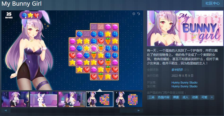这是一个关于一个孤独的人如何在他没想到会见到她的女朋友的故事。 有一天,他找到了一个护身符,并把它戴在了他的宠物身上。 他的兔子变成了一个美丽的女孩。 他有些尴尬,甚至不知道该说些什么,但对于美少女来说,他并不陌生,因为他是她的主人! 在游戏中,您的目标是收集拼图以恢复图片。 轻松获胜:键盘 Сtrl+D - 完成关卡