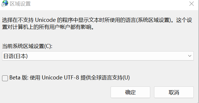 请勿勾选“Beta版:使用Unicode UTF-8 提供全球语言支持”