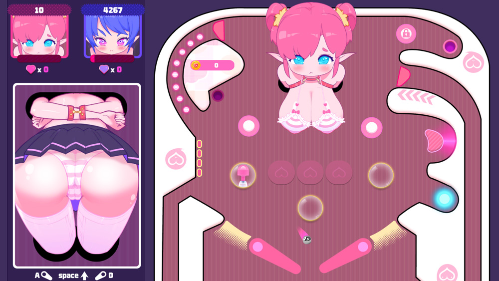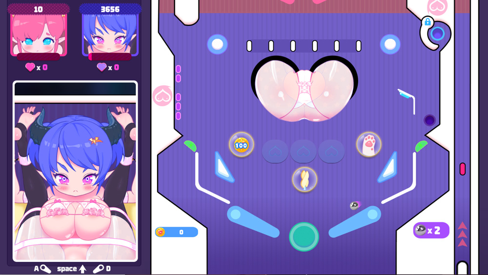 用弹版让弹珠击中奖励分数部位,击中妹子的欧派和PP会产生许多H互动!