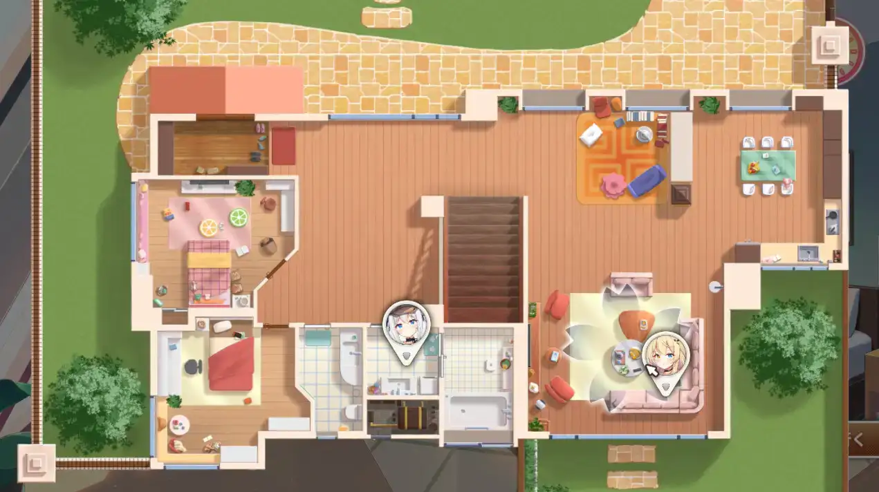 轮到满月上场了。三日月在一旁休息。她还时不时提醒满月动作小一点,不要吵醒了主人公。