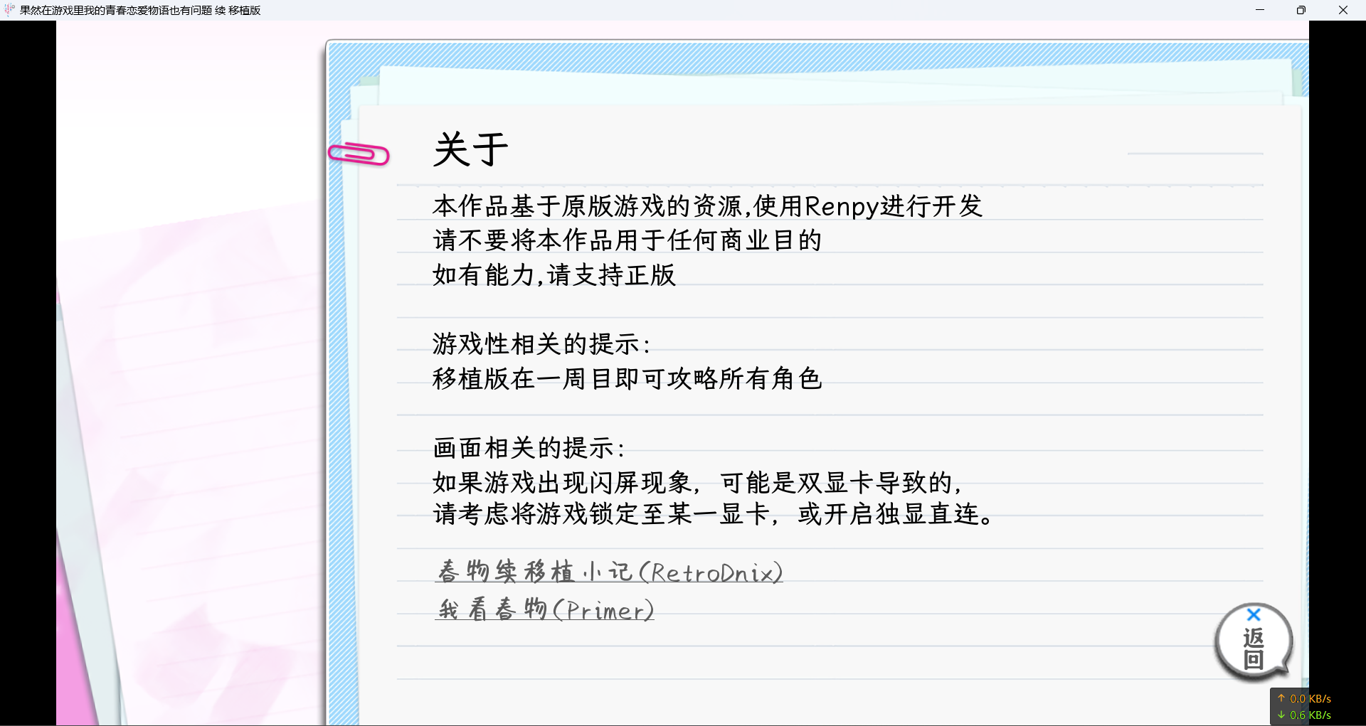 春物一移植版不支持live2d,已用静态立绘代替。