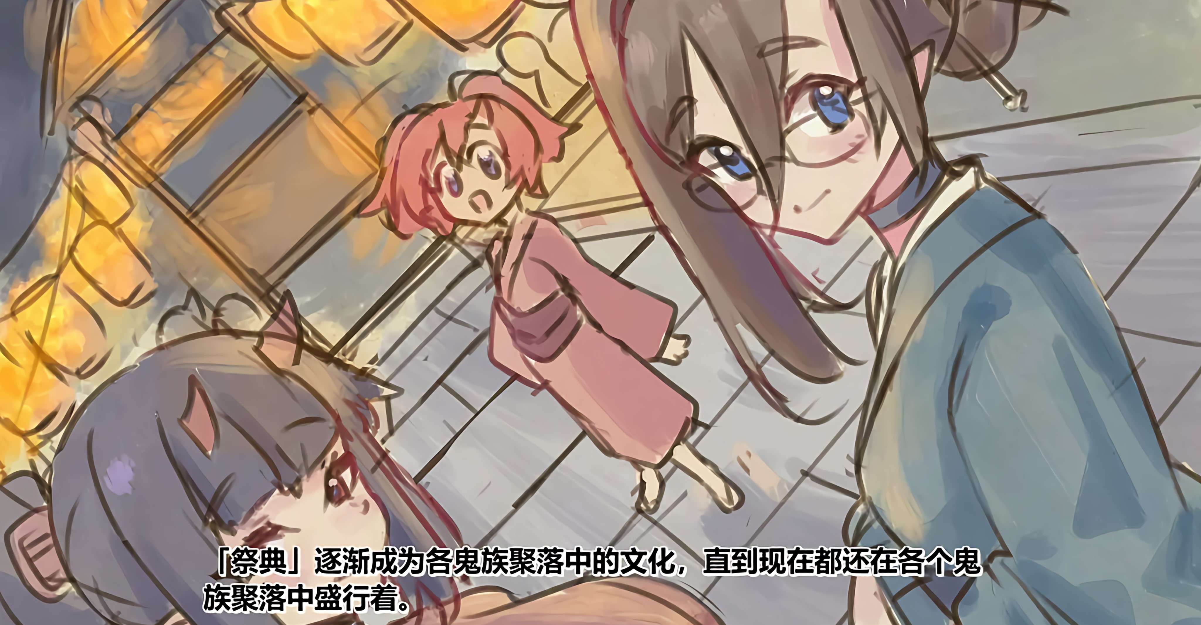 一些鬼族认为这将是再次与人类共存的机会,往后有男性人类成年时都会举行盛大的庆典,适龄的鬼族少女则会借此拉进和心仪男性的关系!