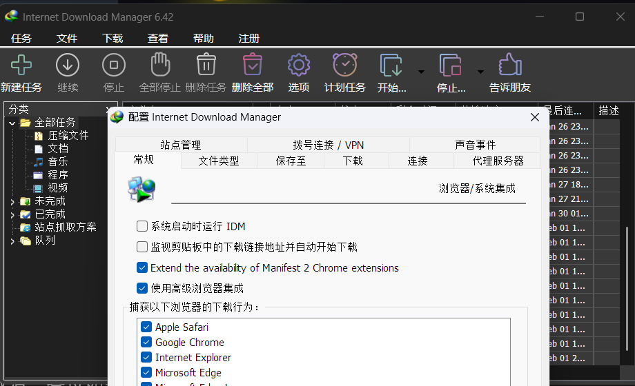 IDM:多线程下载软件,主要用来下载普通的http连接的文件也就是网页上的下载,这款软件站里面也有很多介绍,这里不多追述,温馨提示:IDM正版需要付费使用,这里我们使用注册机激活,各位如果有能力还是建议支持正版哈
