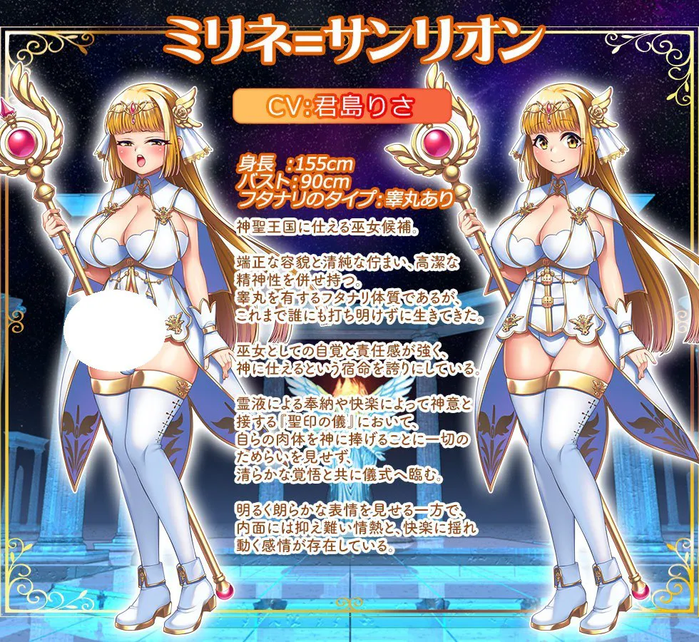 一位是纯洁高尚、“带睾丸”的巫女米莉涅(纯真·清廉类型)。