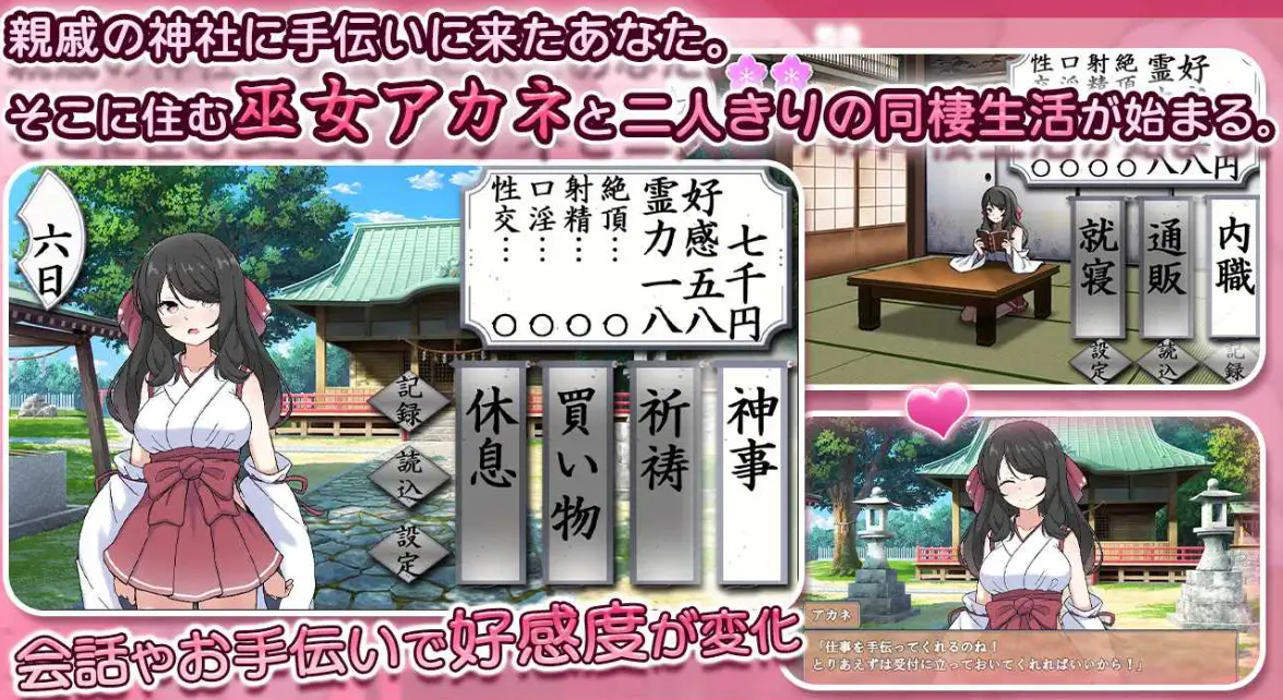 在两人独处的同居生活中,她一边采取行动引发H的事情,一边通过操作来自巫女的好感度,逐渐瓦解她完美的真实面目!