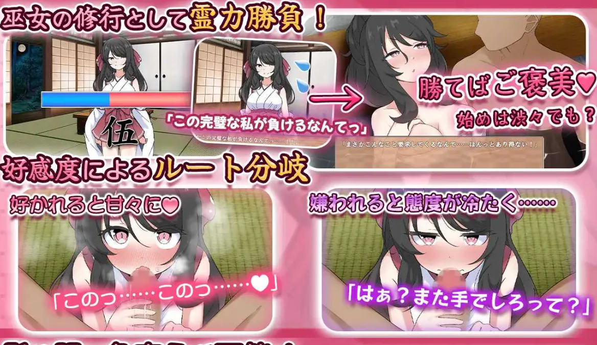 通过挑战获胜来要求H的事情!根据来自巫女的好感度,她的反应也会变化!