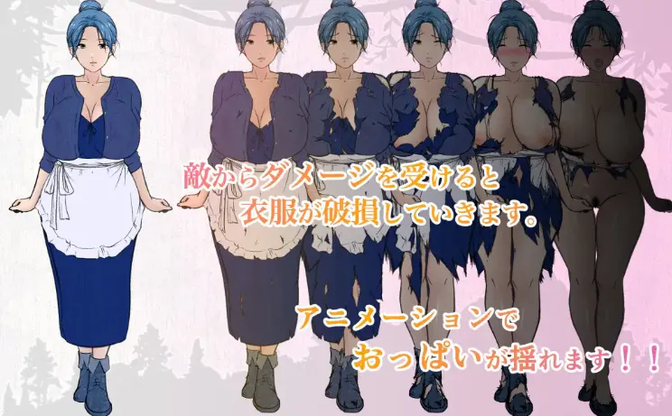 受到敌人攻击时,母亲的衣服会逐步损坏(共5个阶段),该状态会反映在画面上。