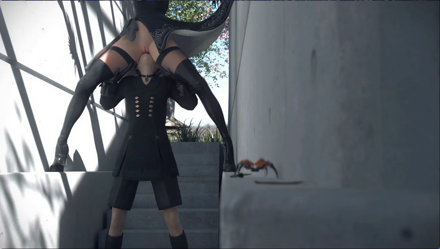 尼尔2B和9S的同人动画,两个人在一个楼梯口办事情……