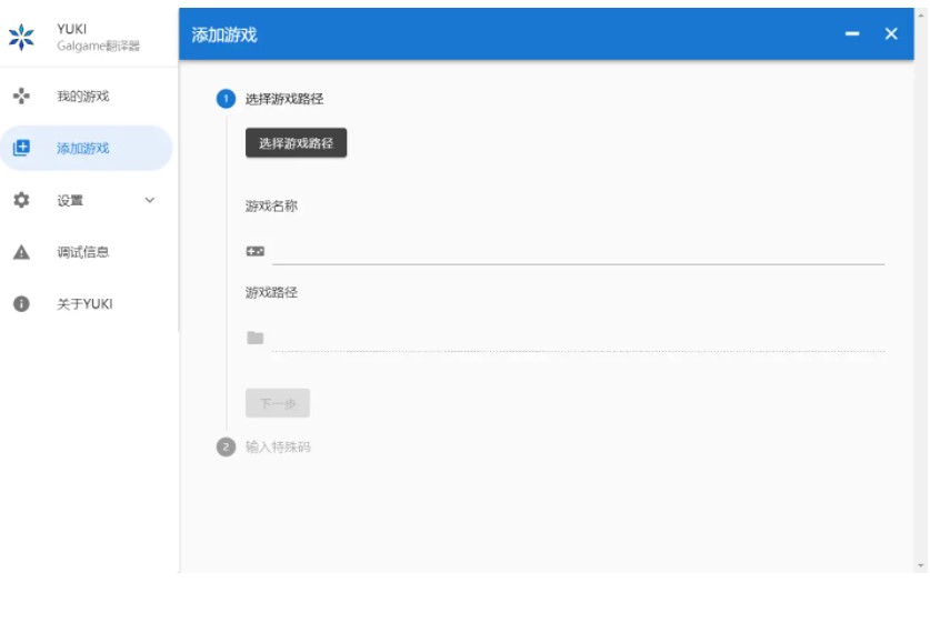选择完游戏路径后可以修改显示的游戏名,然后点击下一步添加特殊码